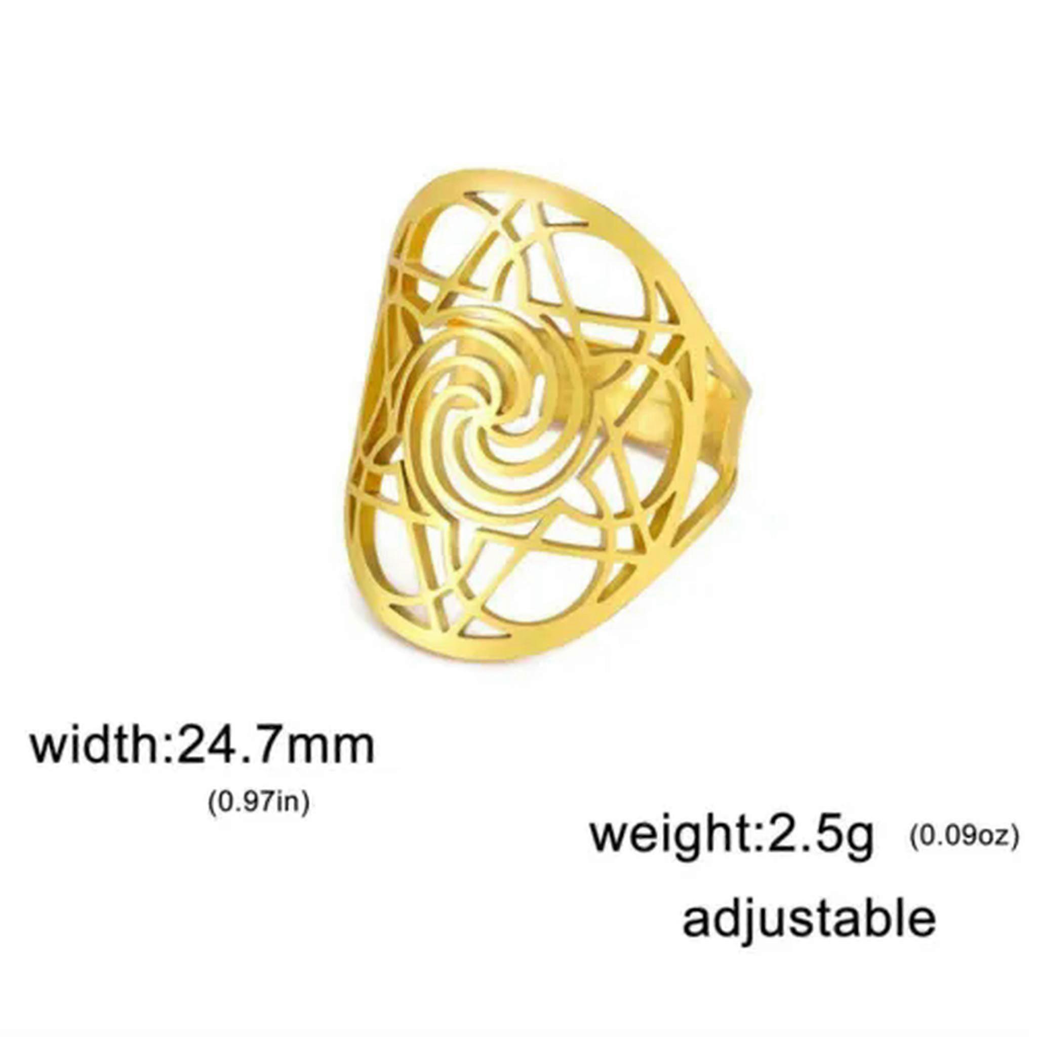 RSAMD Star of David Rings Men Women Stainless Steel Gold Color Finger Rings Geometric-Resizable-Gold Color