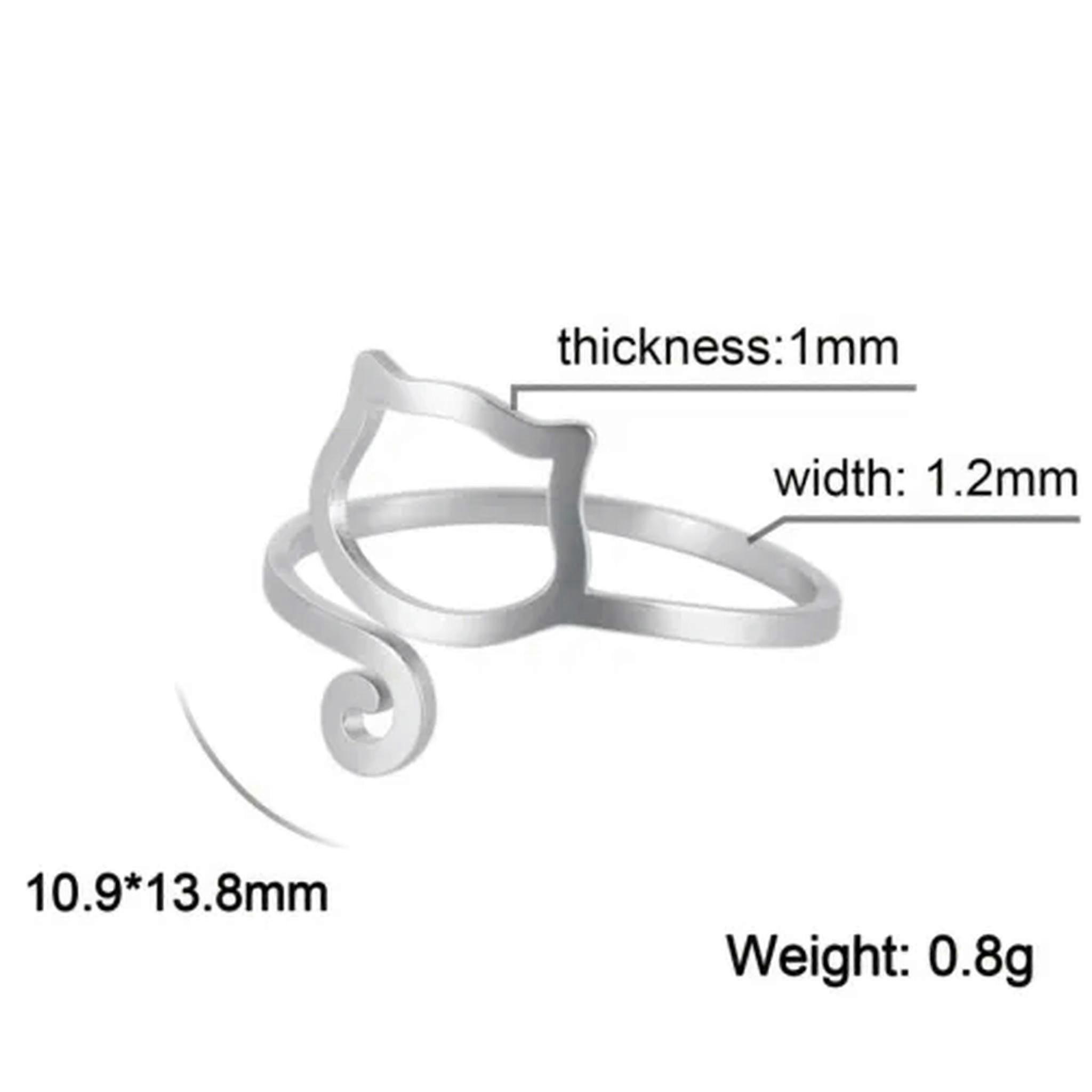 RSAMD Cute Tail Kitten Cat Ring Adjustable Stainless Steel Open Rings Animal Jewelry-Resizable-C steel