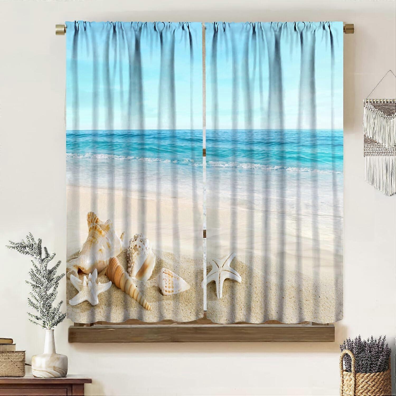 Ocean Curtains Nautical Beach Starfish Shell Print Blackout Drapes for Bedroom Living Room 2 Pack 42x63 21x63 Style4