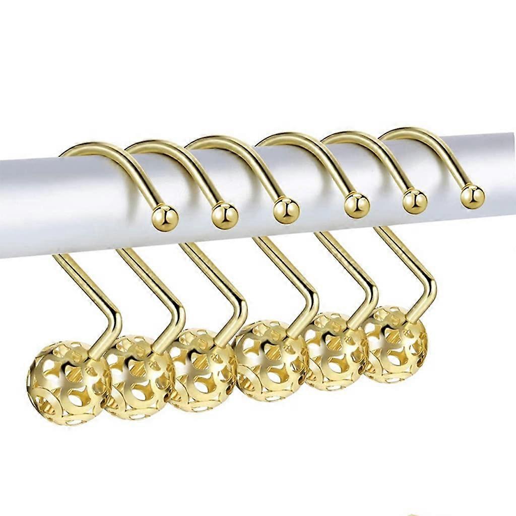 Gold Shower Curtain Hooks Decorative S Shaped Rings for Bathroom Rods Set of 12