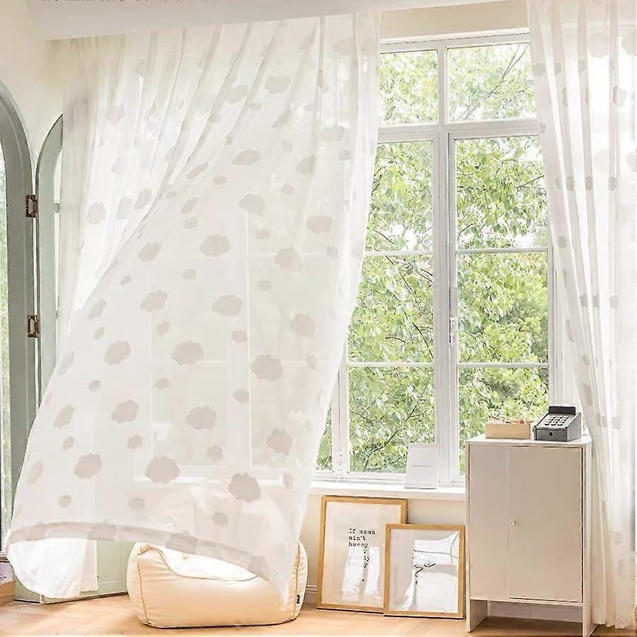 White Sheer Cloud Curtains with Rod Pocket, Sunlight Filtering Voile Drapes for Bedroom, 2 Panels 52x90