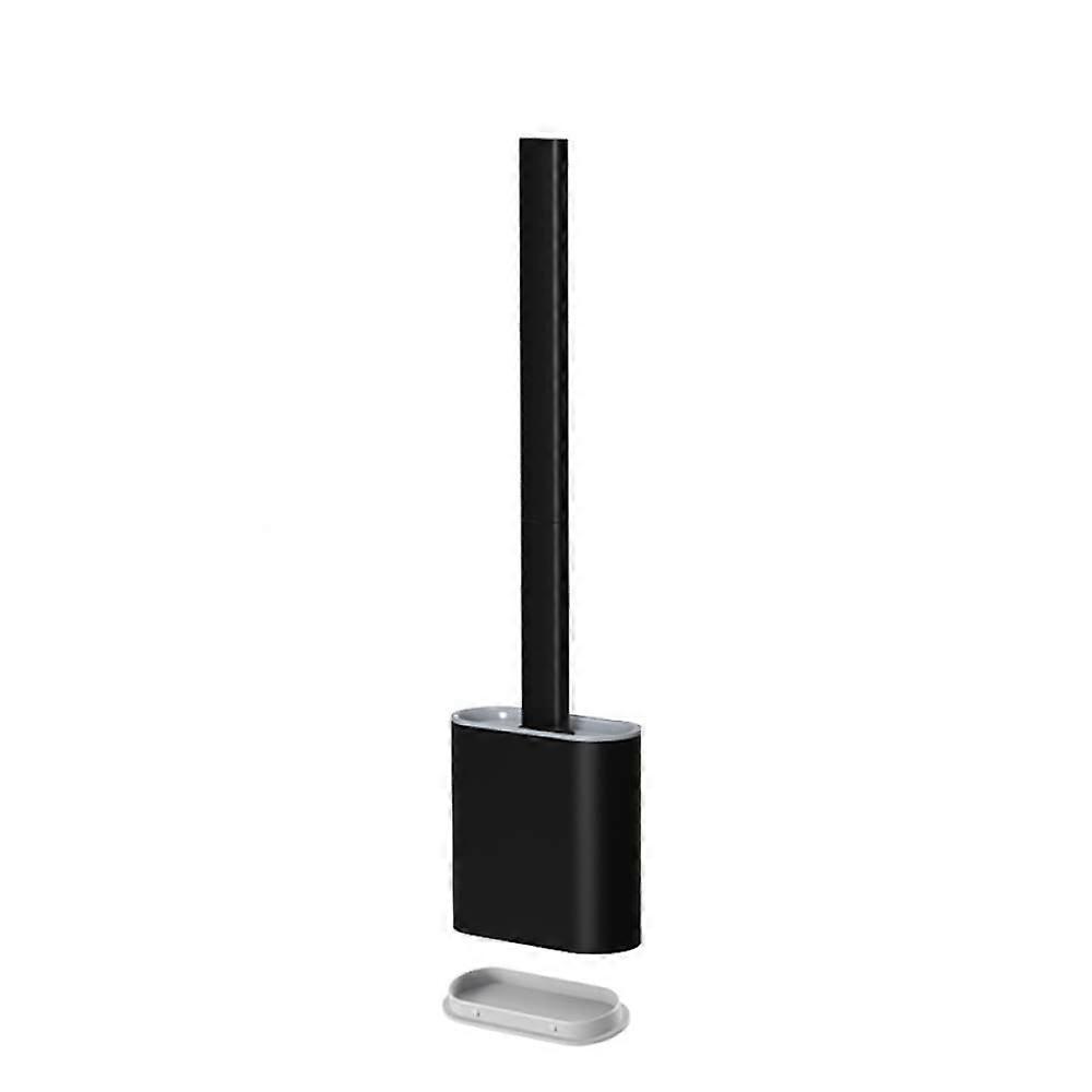 Silicone Toilet Brush with Holder Set, Flat Head Long Handle Bathroom Cleaner, Black Removable