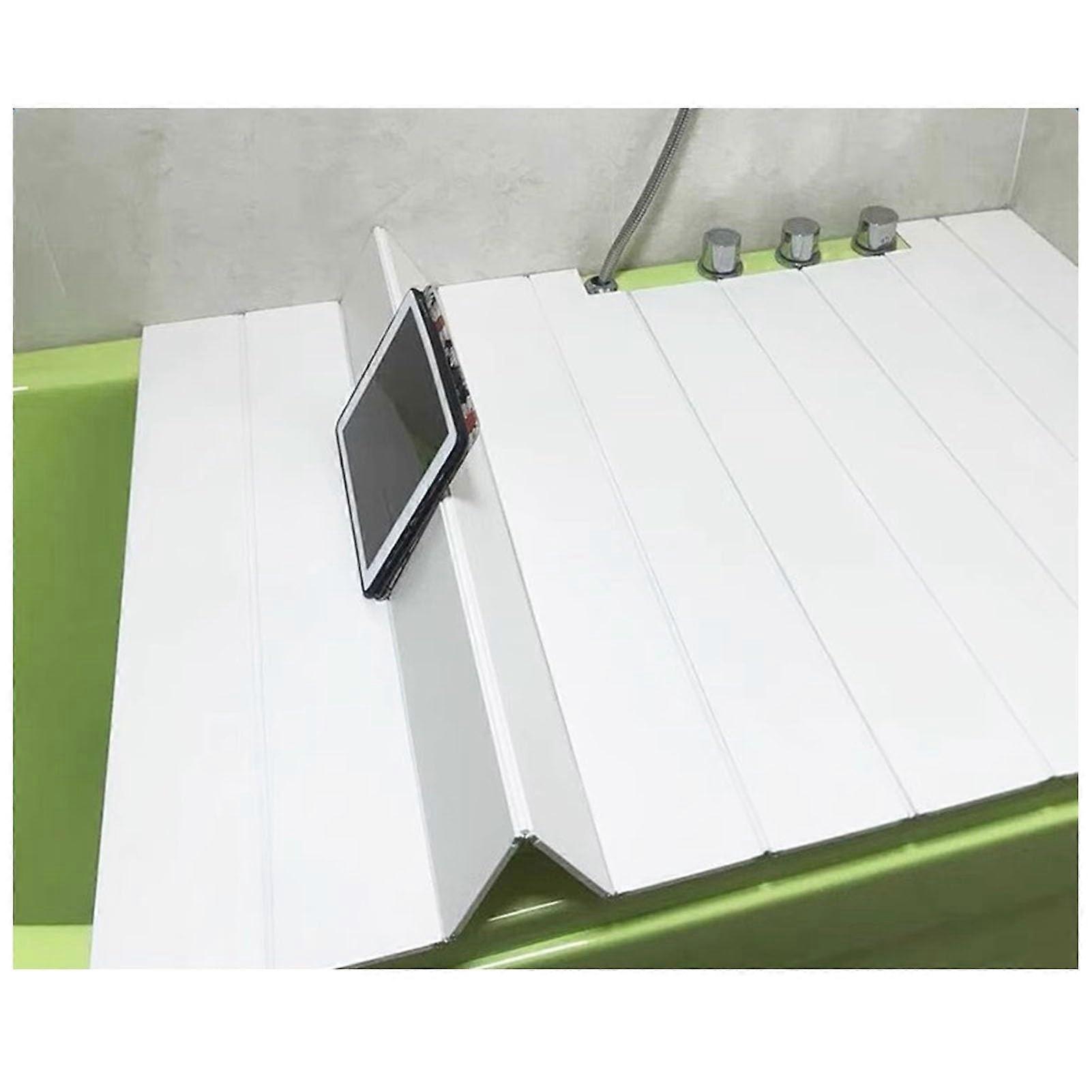 Bathtub Tray Cover PVC Foldable Insulation Lid Dust Board Bathroom Rack for Books Phone Tablet 80x138x0.6cm White