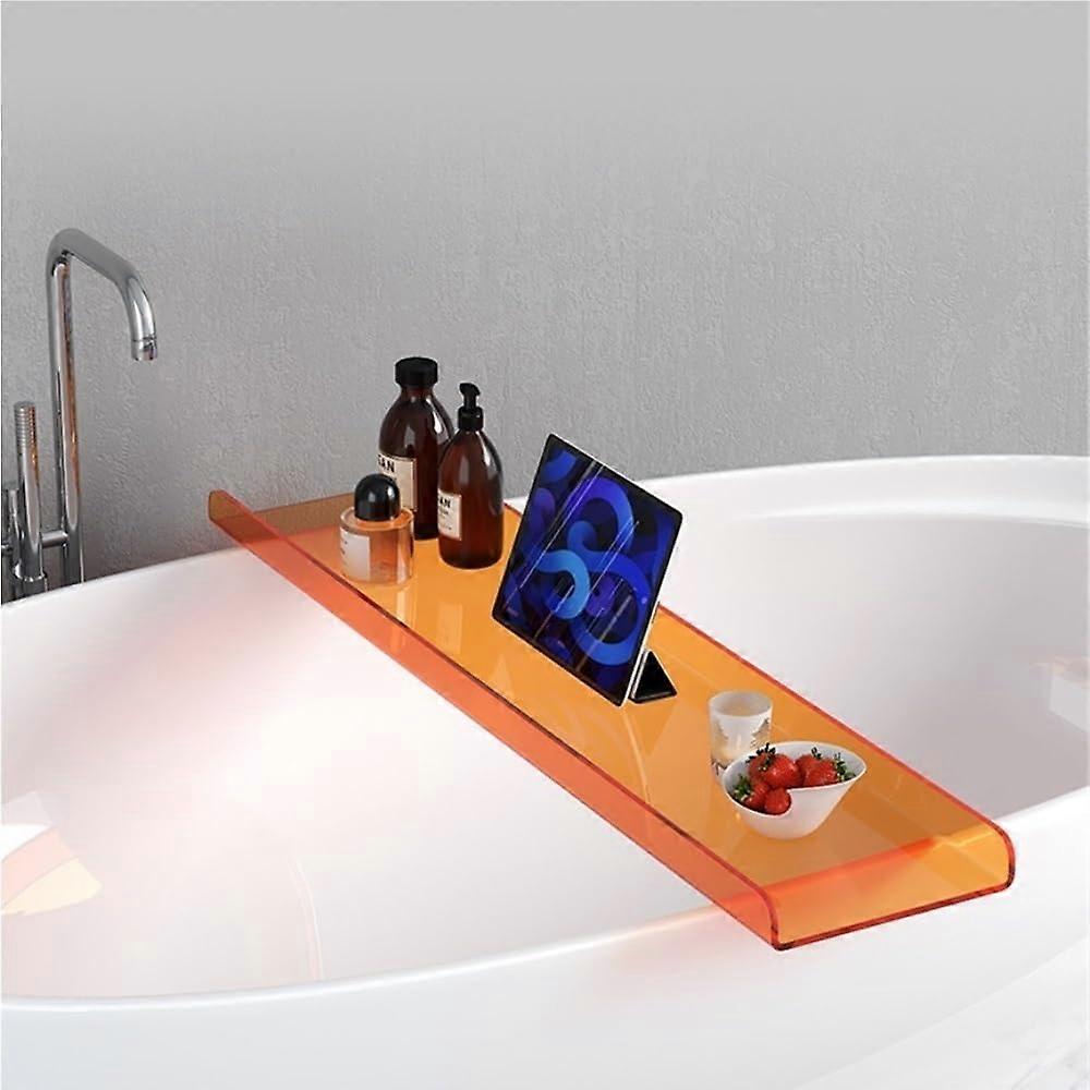 Acrylic Bathtub Tray with Integrated Caddy Shelf, Modern Minimalist Bath Accessories for Tub (Orange)