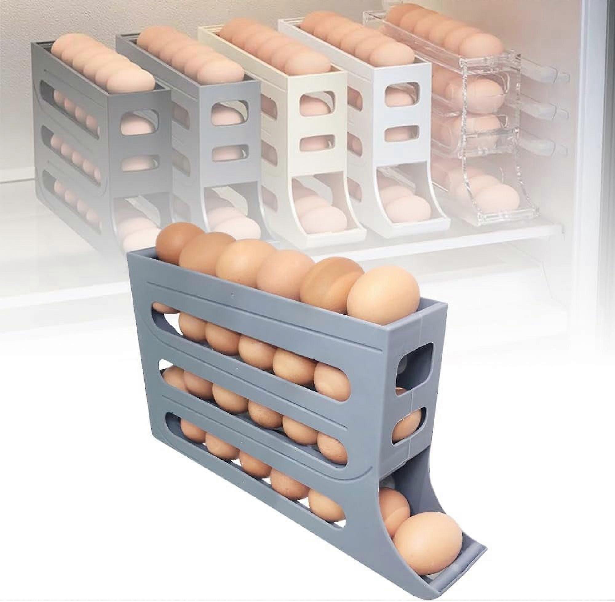 4-Tier Egg Holder for Fridge, 2024 Auto-Scrolling Rack, Space-Saving 30-Egg Organizer, Large Capacity Dispenser (White, 2PCS)