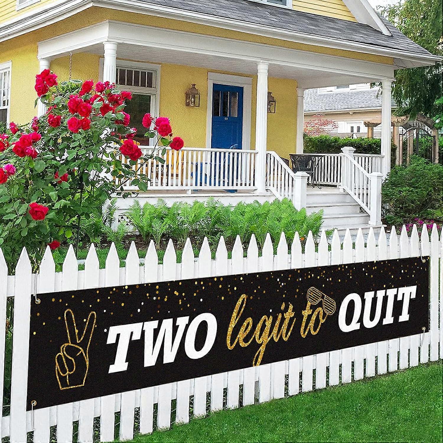 Custom Large Two Legit To Quit Banner, Happy 2 Years Old Birthday Backdrop, Compatible with Photo Booth & Party Decor, 9.8x1.6 Ft Yard Sign