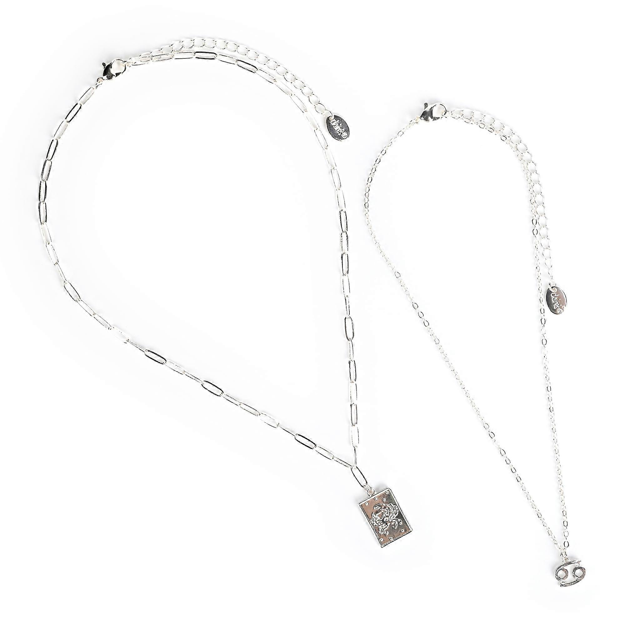 Claire's Girls Teen Silver Zodiac Cancer Necklace Set, Lobster Closure, 2-Pack, 38473
