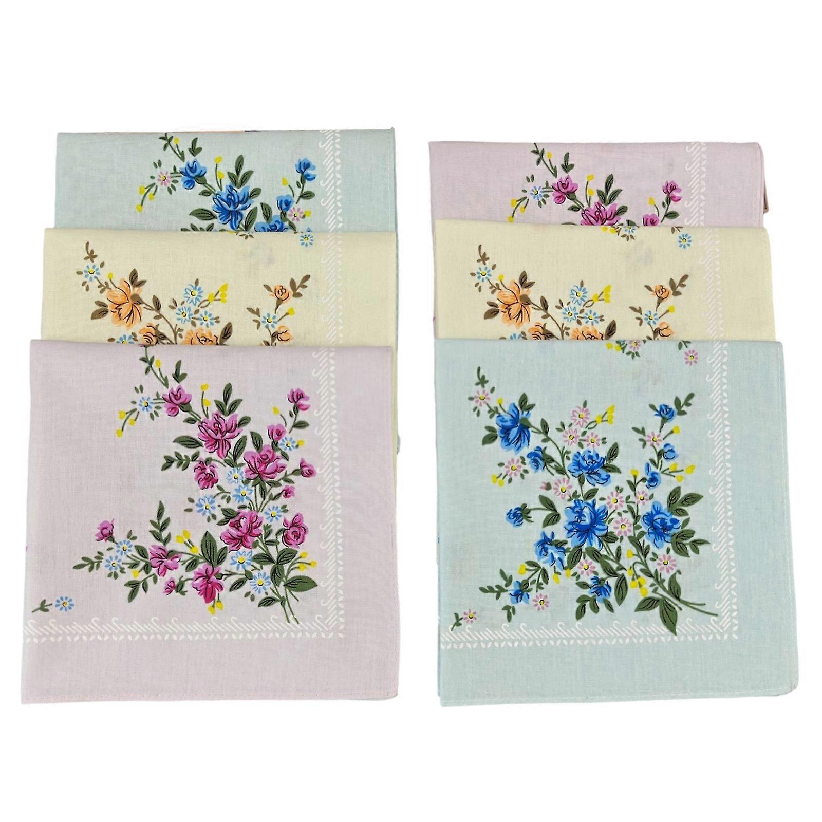 Straight Edges Flower Printed Cotton Handkerchief For Women Casual Use Simple Design Kerchief Pocket Square for Everyday 6 items