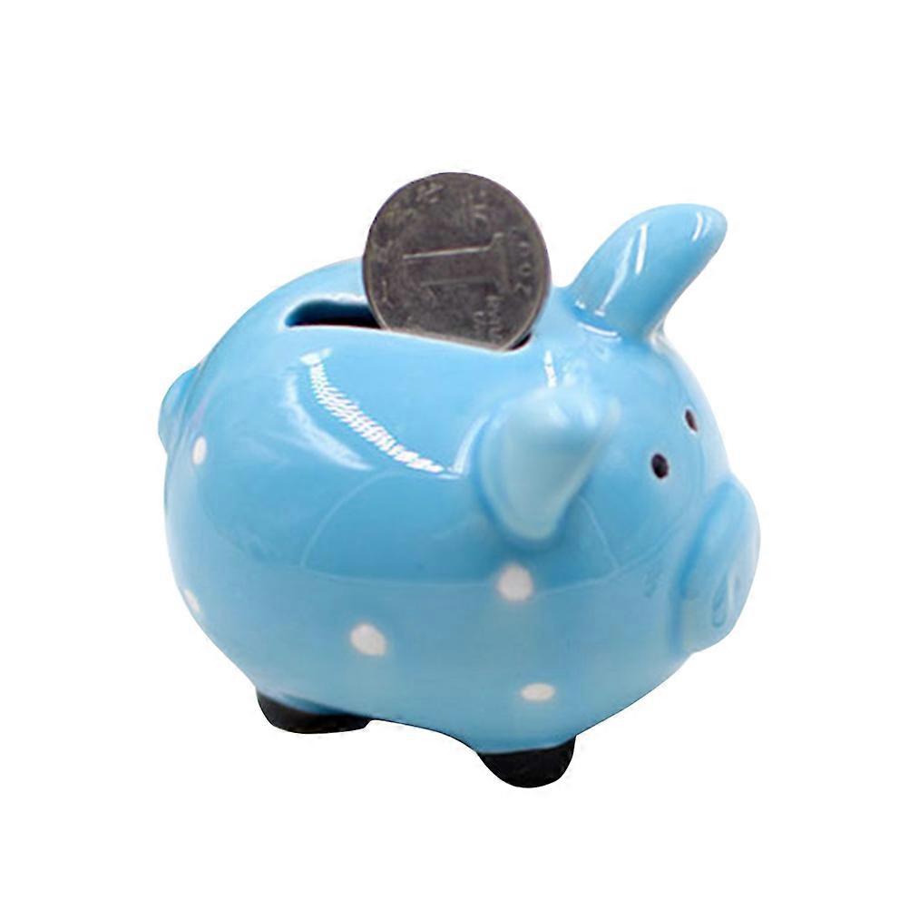 Coin Bank Cartoon Piggy Ceramic Coin Storage Container for Kids Blue