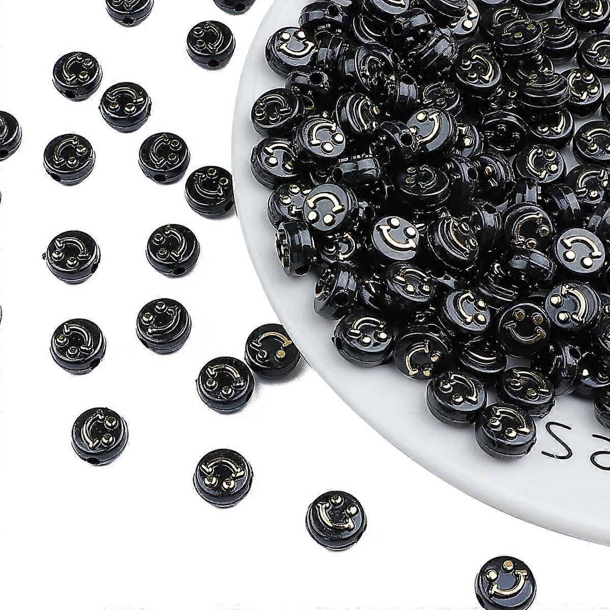 50Pcs/lot 10mm Mix Color Smiling Face Flat Round Acrylic Loose Spacer Beads for Jewelry Making DIY Earrings Bracelet Accessories