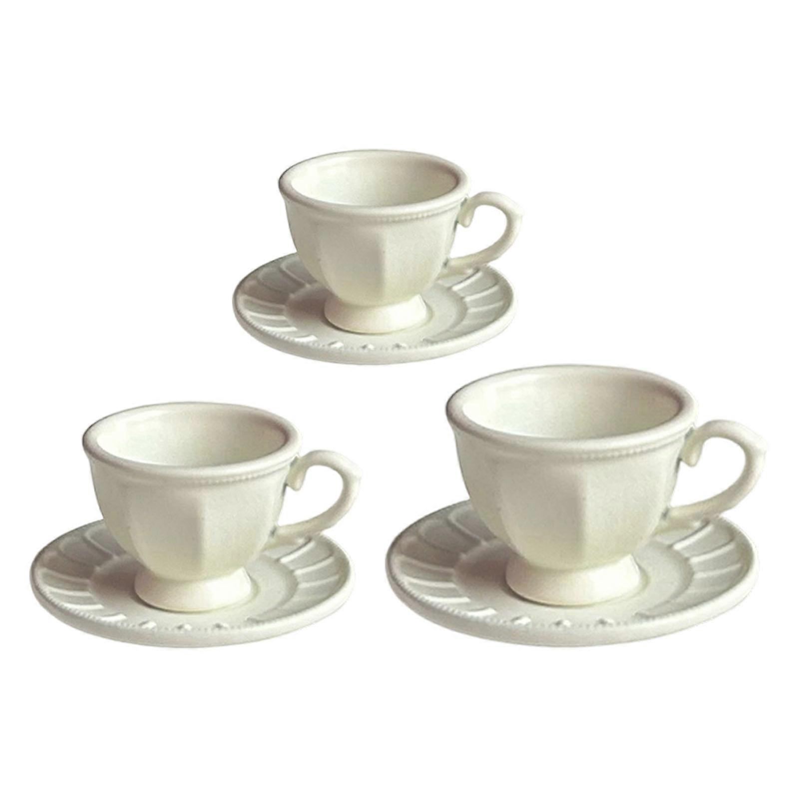 3 Piece French Dollhouses Miniature Coffee Cup Set Alloy Coffee Cup And Saucer For Elegant Scene Decoration White