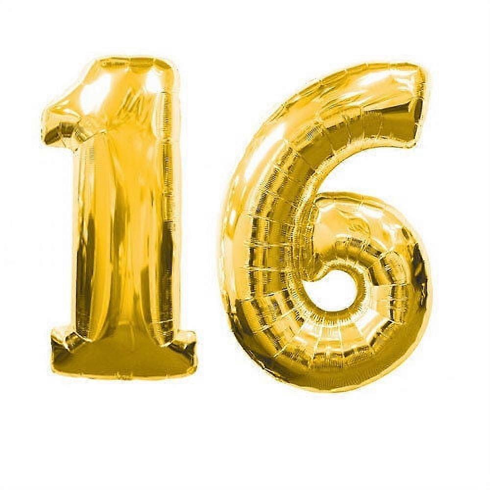 40" Large 16 Gold Number Balloons 16th Birthday Anniversary Foil Float Helium