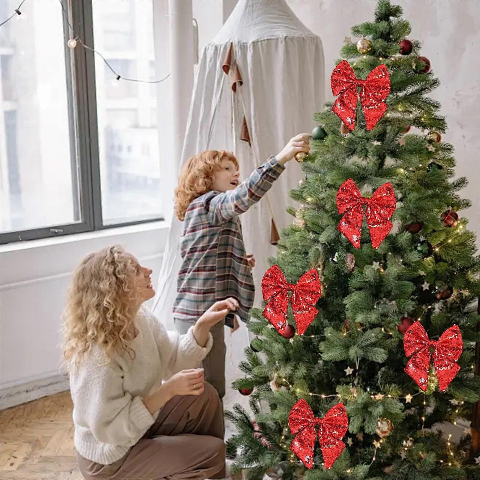 2 Pcs 7.09*9.06 Inch Christmas Bows Compatible with Wreaths, Garland, Tree Decorations, DIY Craft, Gift Wrapping, Holiday Ornaments