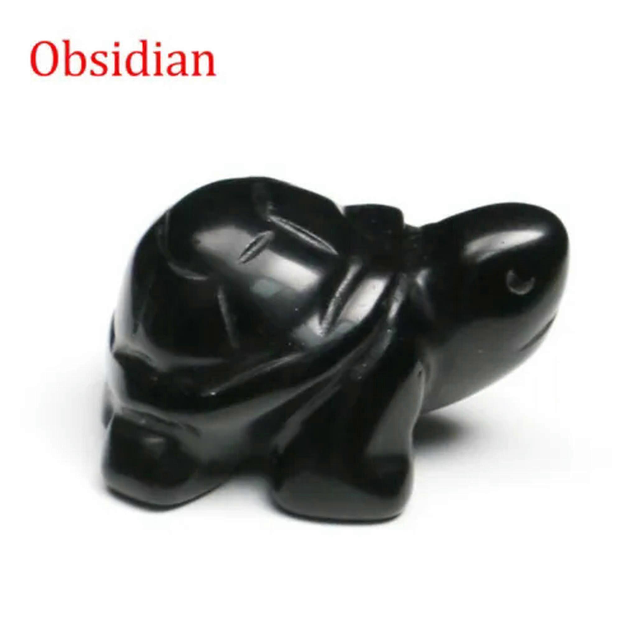 RSAMD 1.5" Turtle Tortoise Natural Gems Crystal Carved Reiki Healing Animal Figurine-Obsidian