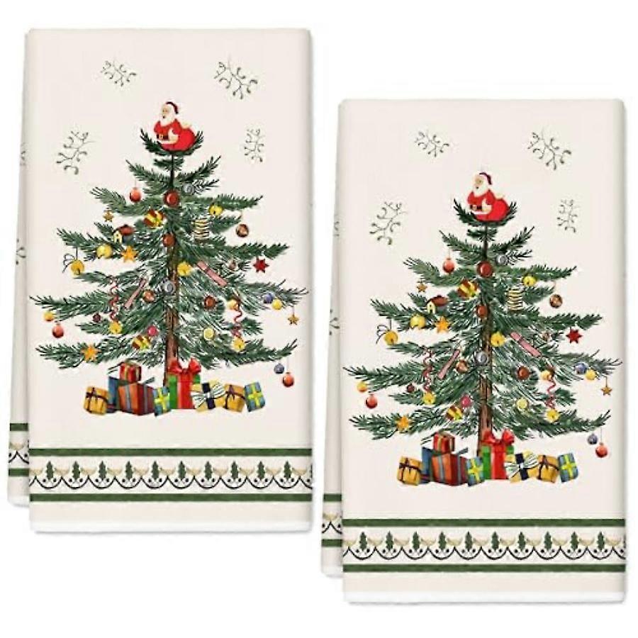 Christmas Kitchen Towel Vintage Xmas Tree Dish Towel Retro Rustic Hand Drying Tea Towel for Winter Farmhouse Cooking Wiping 18