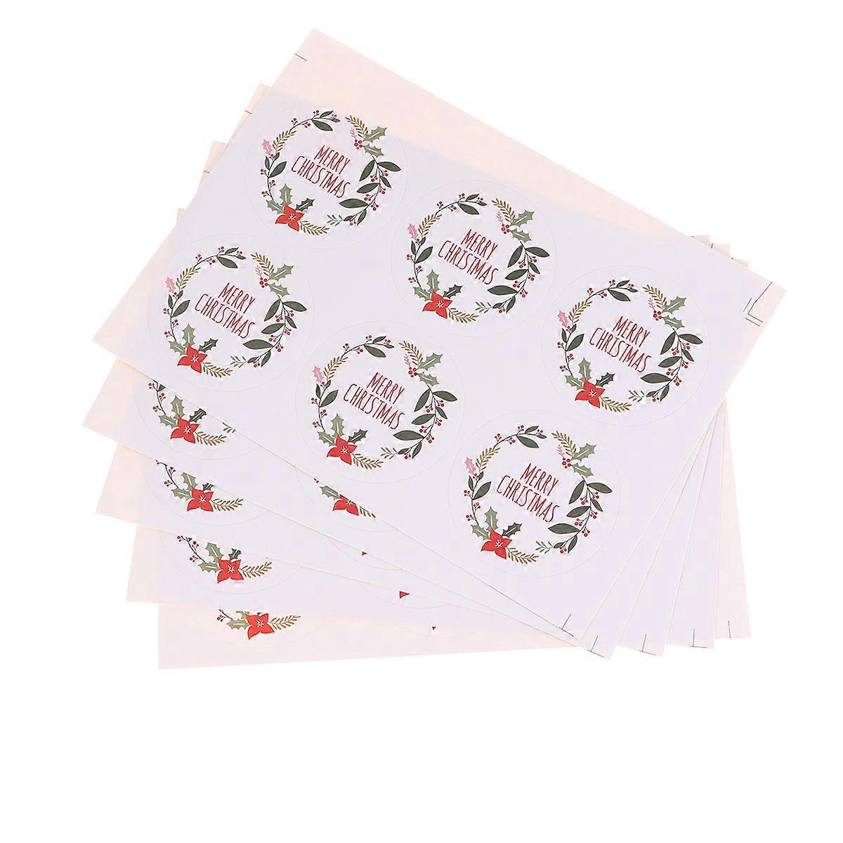 Candy Bags Sealing Stickers Merry Christmas Wreath for Party 5 Sheets