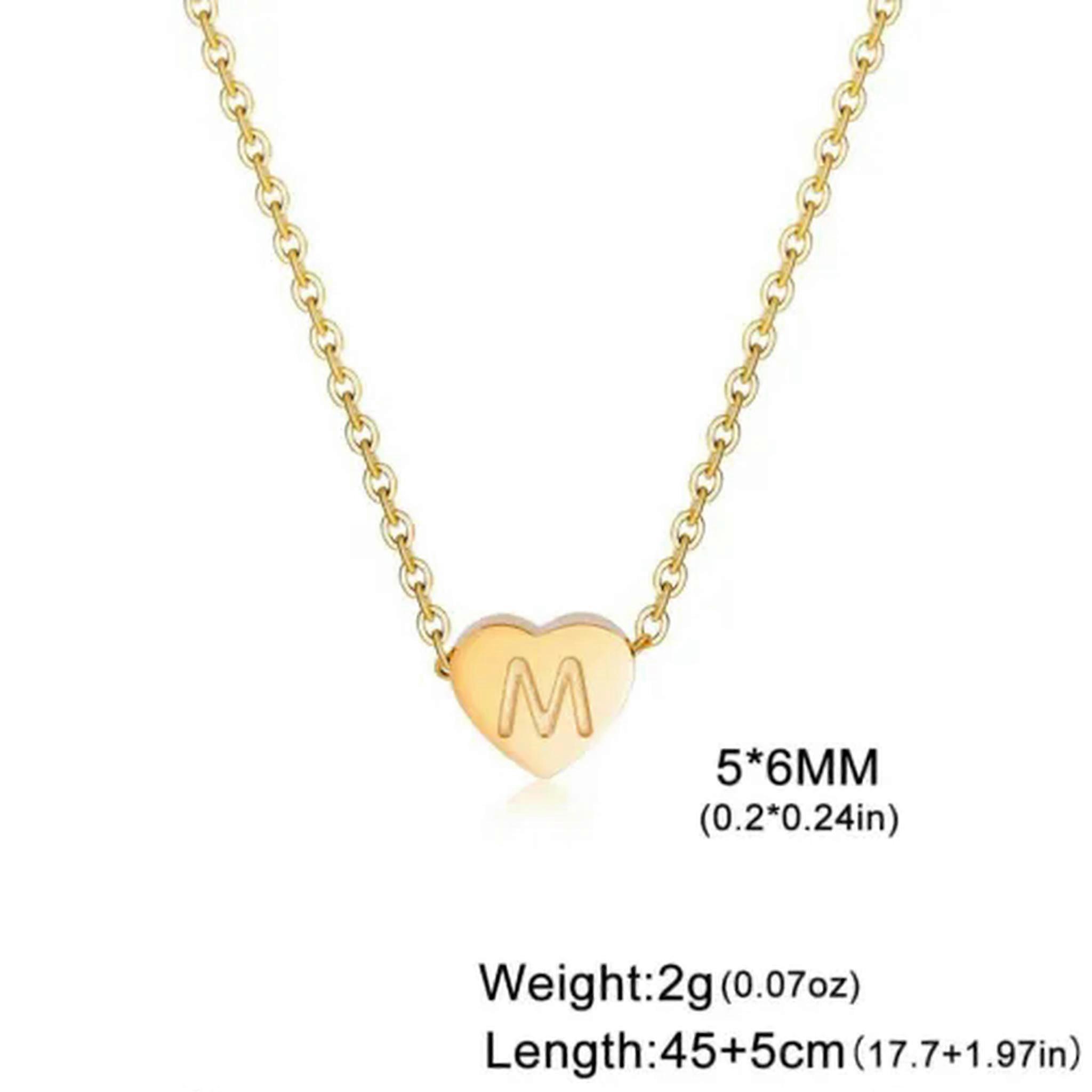 RSAMD Initial Letter Heart Pendant Necklaces Stainless Steel Neck Chain Choker Jewelry-45-50cm-Gold-color-I
