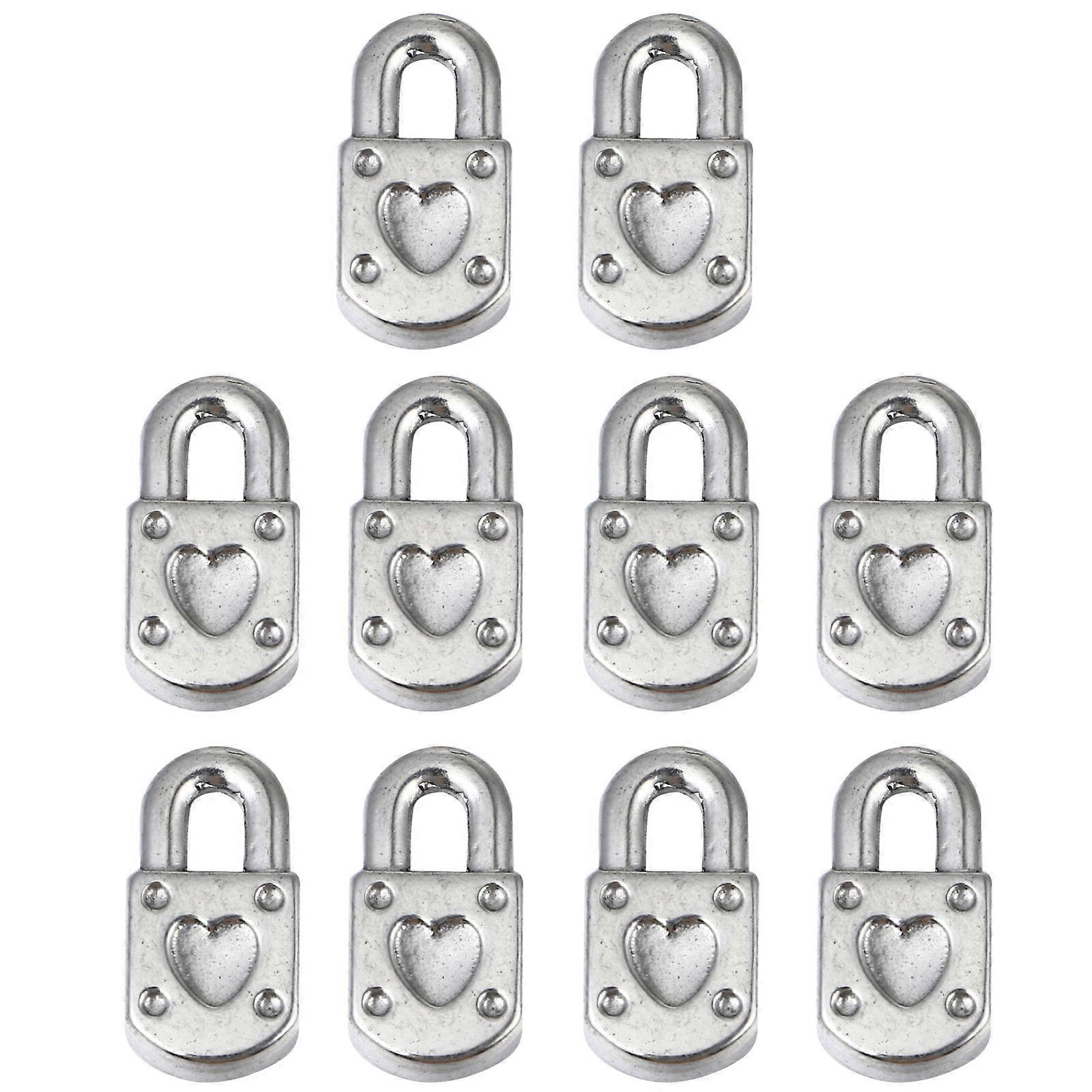 Silver Love Heart Lock Pendant Jewelry Charms for DIY Bracelets 10Pcs