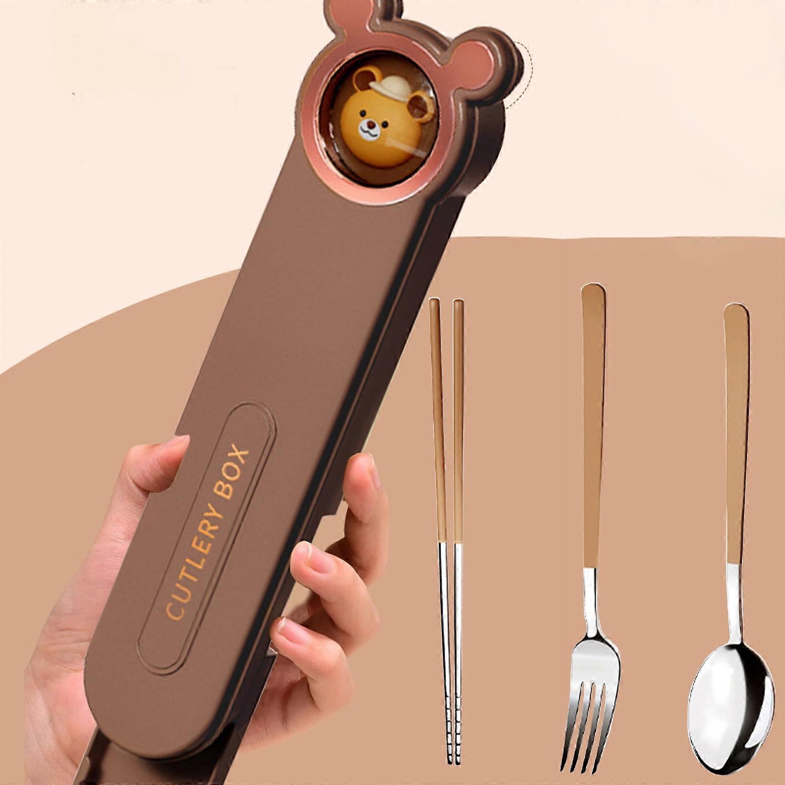FloHua Christmas Gift Clearance: Cute & Funny Portable Cutlery Box, 3-Piece Stainless Steel Set, Compatible with Outdoor Picnic, Kids & Adult Gift