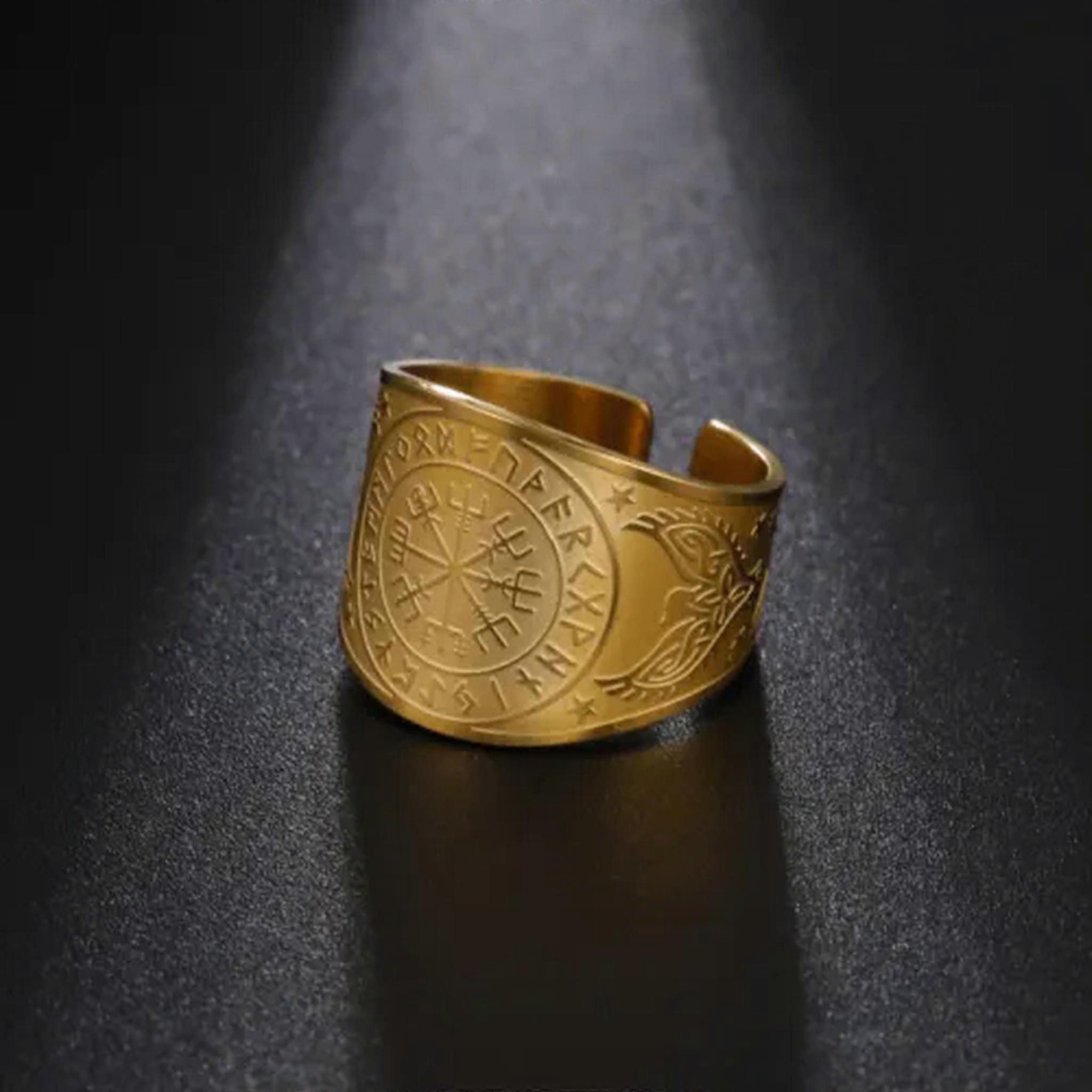 RSAMD Viking Compass Ring Nordic Rune Amulet Stainless Steel Jewelry Gift-9-Vegvisir Gold 2