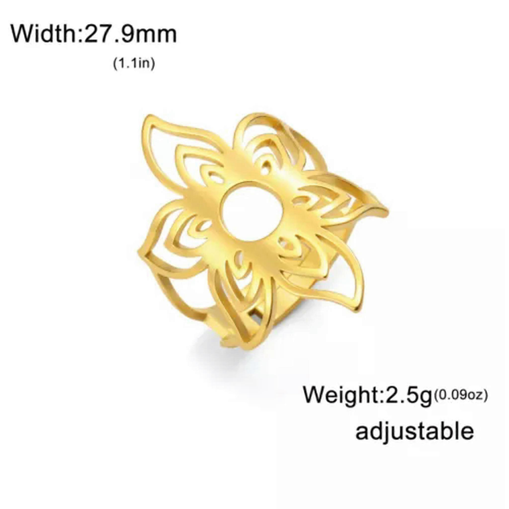 RSAMD Triple Flower Rings Stainless Steel Adjustable Finger Rings for Women Jewelry-Gold-Adjustable