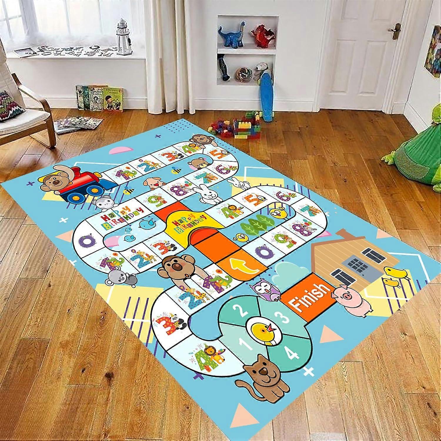 Outer Space Kids Rug Educational Kids Carpet with Cartoon Animals &Numbers,Non-Slip Washable Floor Mat for Nursery,Bedroom Decor