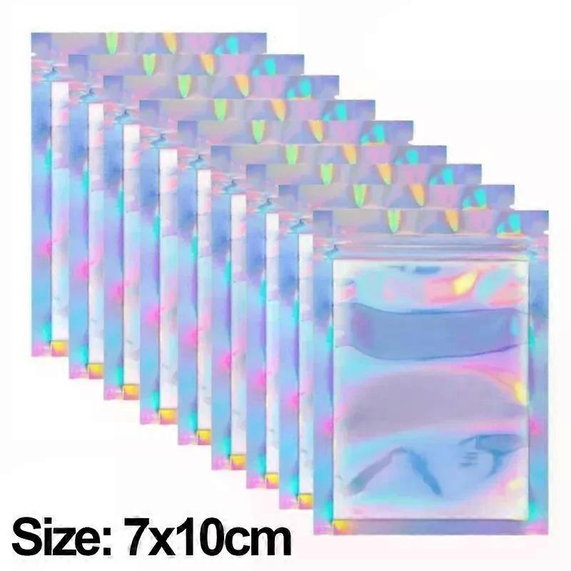 100/10PCS Iridescent Laser Sealing Bags Holographic Resealable Foil Pouch Necklace Jewelry Gift Packaging Kitchen Storage Bag