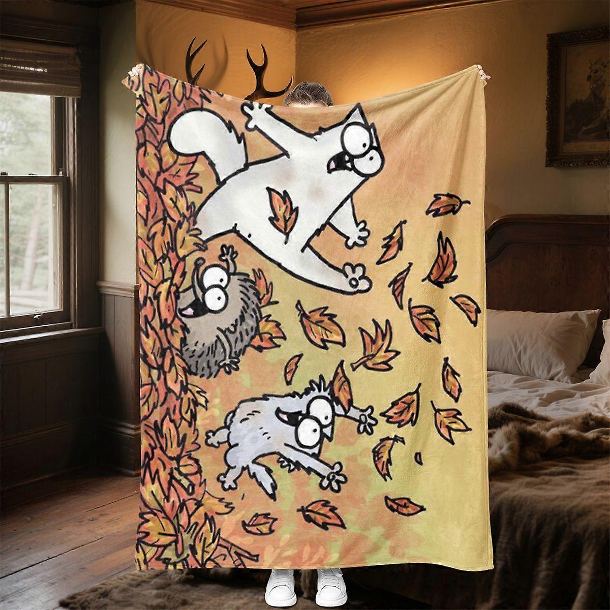 Simon's Cat Plush Throw Blanket - Soft Flannel All-Season Cozy Bed & Sofa Warmer with Adorable Cartoon Cats & Autumn Lea-asdfg157