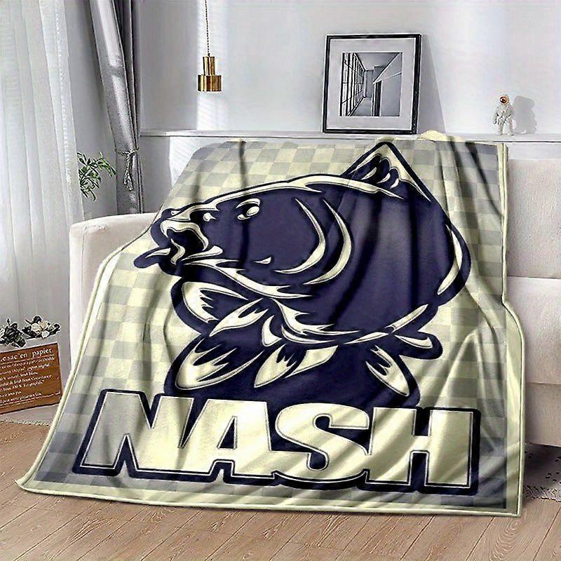 Nash Fishing Logo Design Flannel Blanket - Soft and Comfortable All-Season Geometric Pattern, Navy Blue and Golden Moder-asdfg353