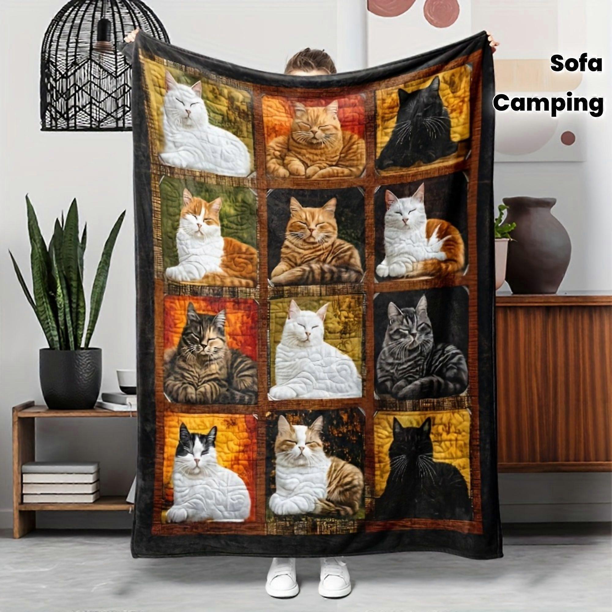 Soft Flannel Blanket - Cozy All-Season Throw with Multi-Cat Patterns (Tabby, Tuxedo, Persian), Warm Bedspread Couch Cove-asdfg408