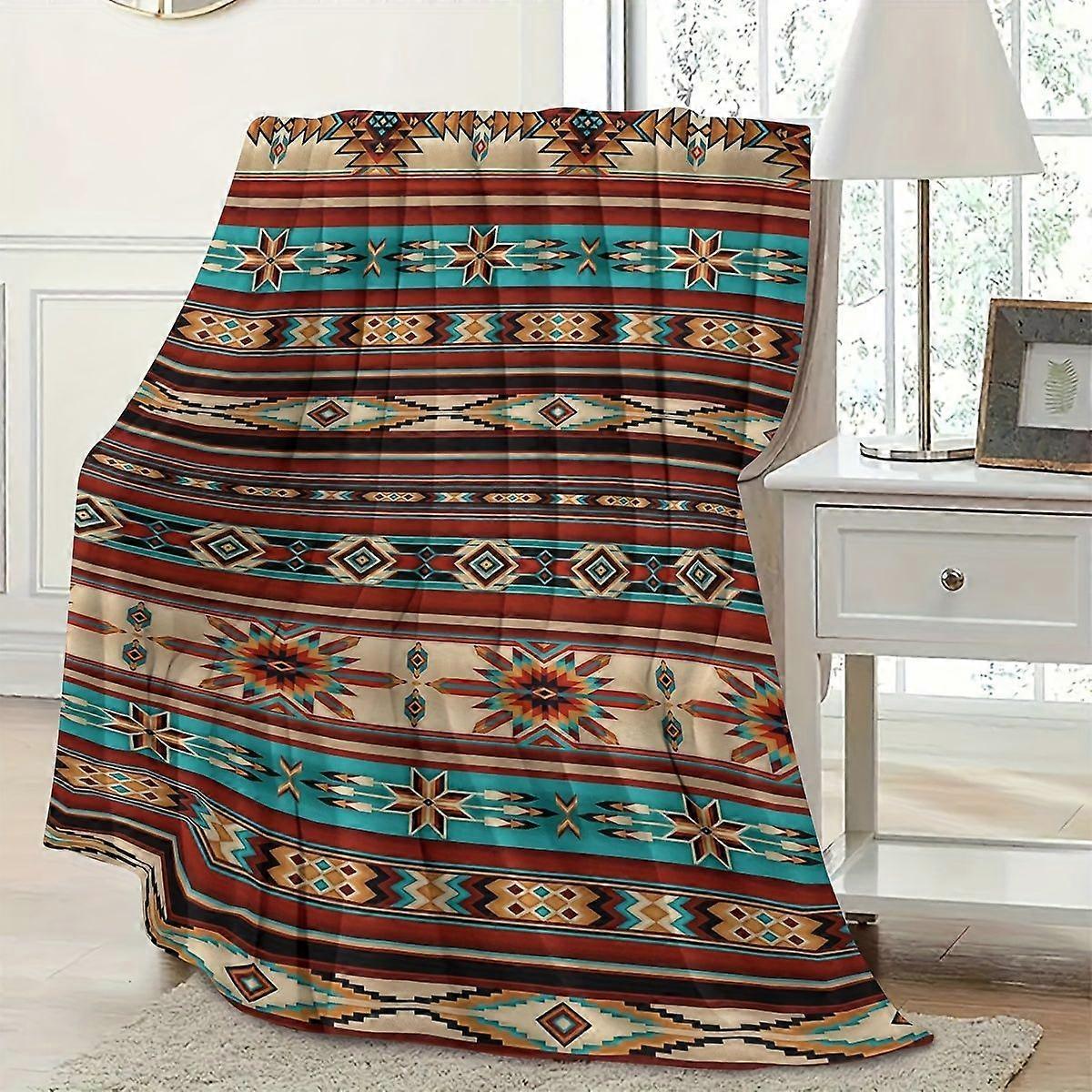 Tribal Geometric Throw Blanket - Soft Flannel-like Texture All-Season Bedspread Sofa Cover - Teal Blue, Brown, Red, Blac-dfghj1