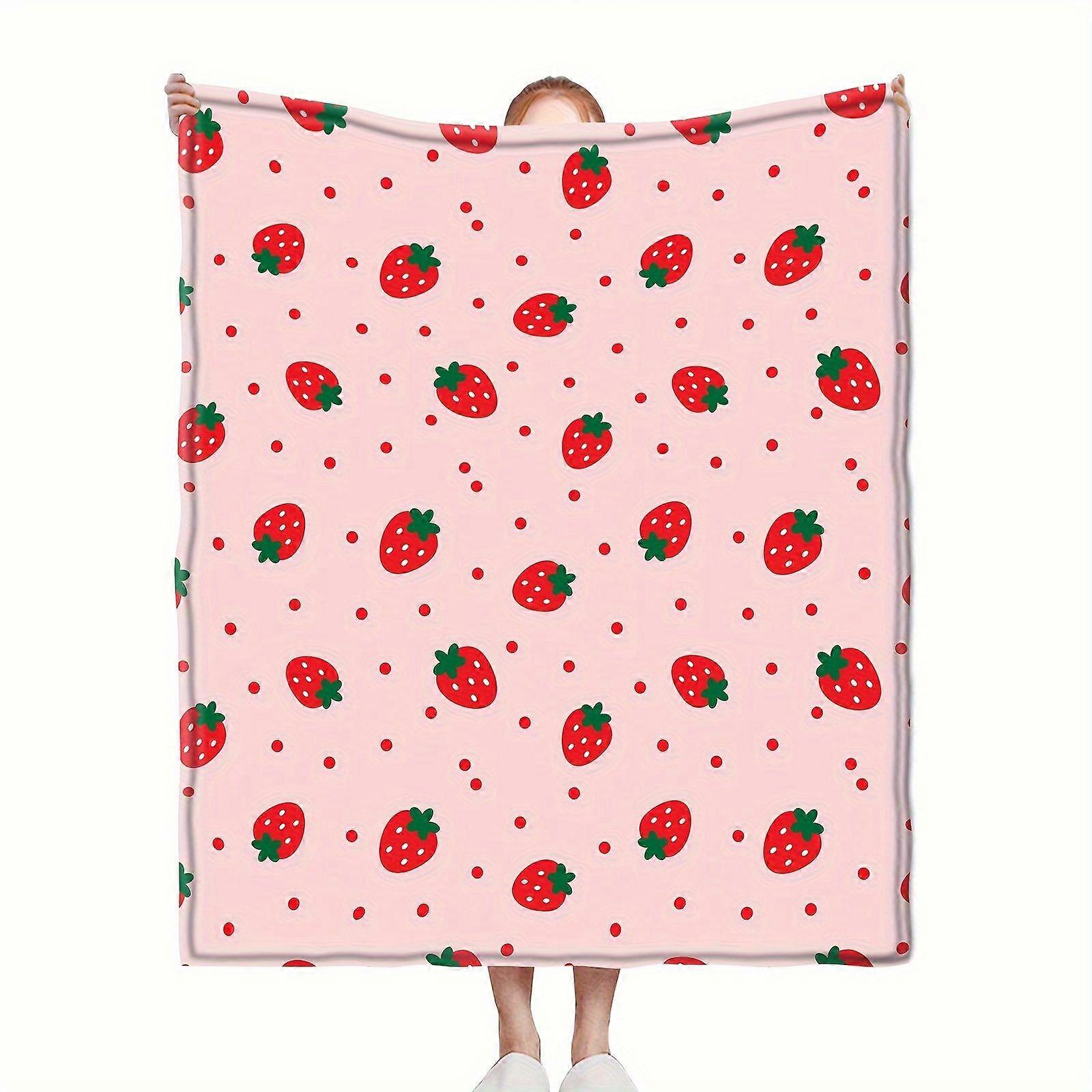 [Ideal Birthday Gift] Strawberry-Themed Flannel Blanket for Girls - Soft, Lightweight, and Warm Pink Throw with Strawber-dfghj30