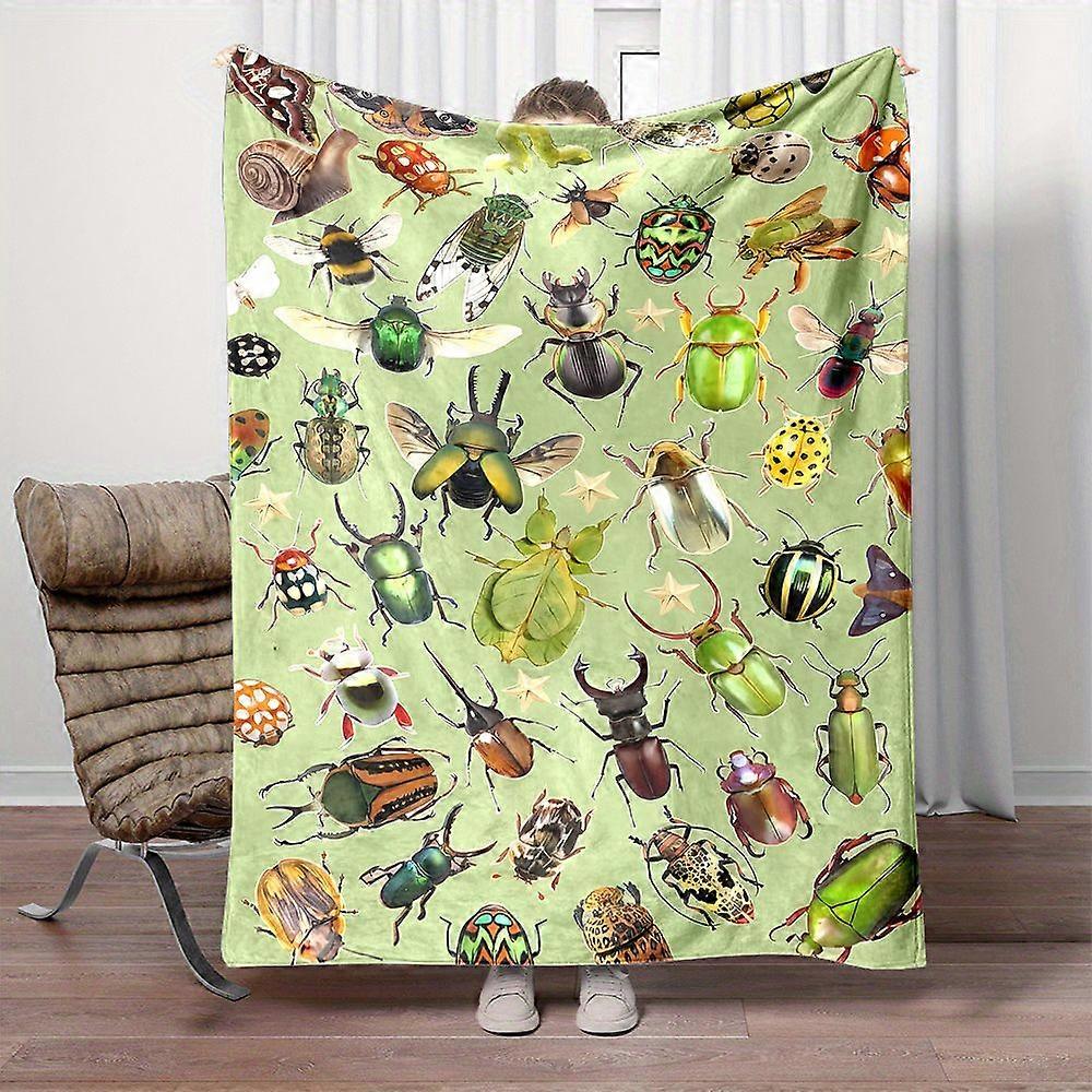 Vibrant Insect Print Flannel Blanket - Soft, Warm & Cozy All-Season Throw for Sofa, Bed, Office, Travel - Perfect Gift f-dfghj298