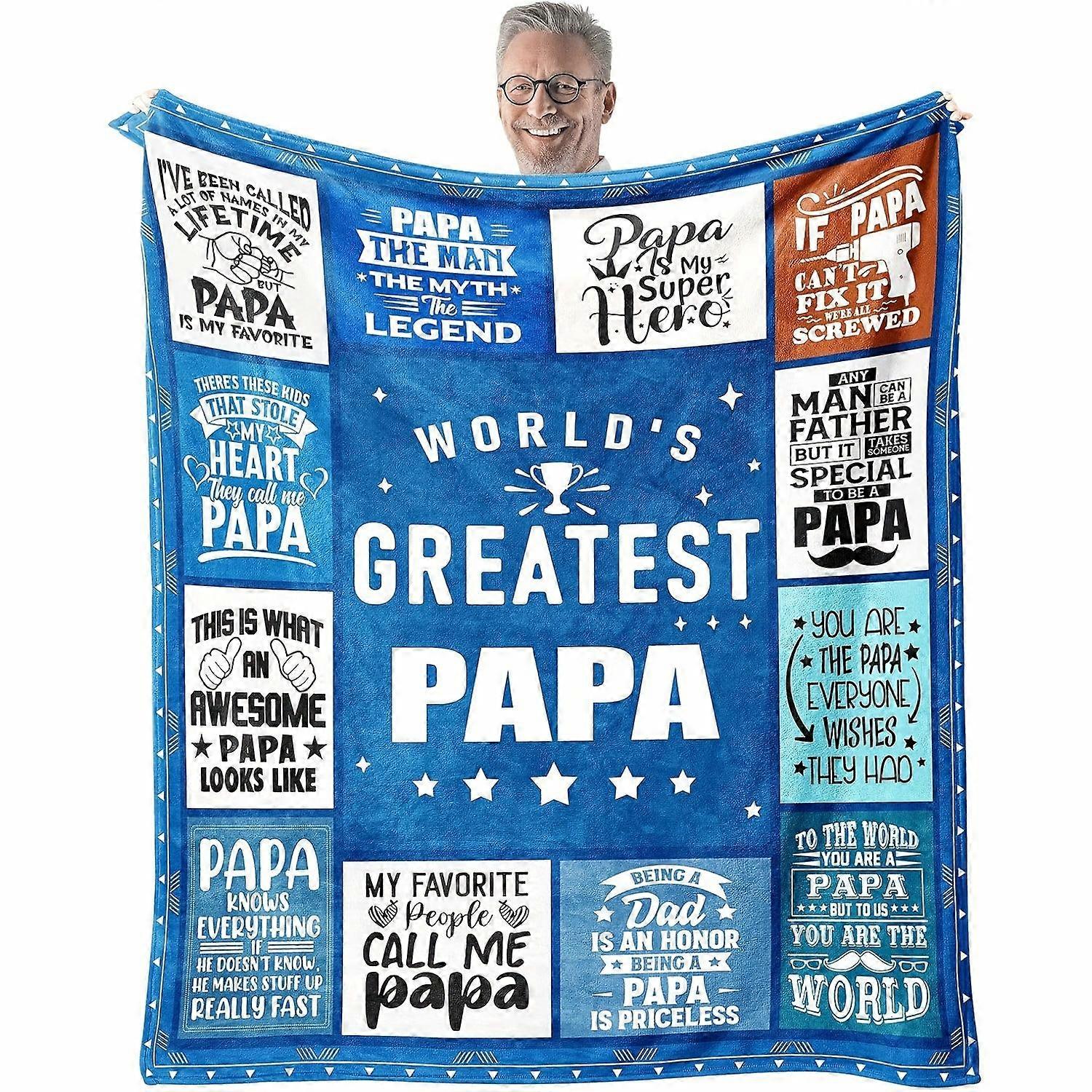 [Cozy Papa Blanket] Soft & Cozy World's Greatest Papa Flannel Throw Blanket | Vintage Style with Fun & Heartfelt Message-dfghj335