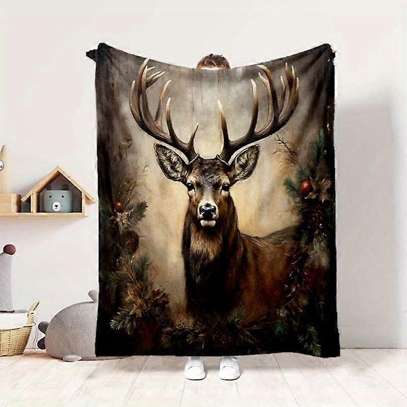 Soft and non-shedding, cozy vintage Christmas deer blanket - suitable for bedroom, living room and office decor 280gsm-mnbvc104