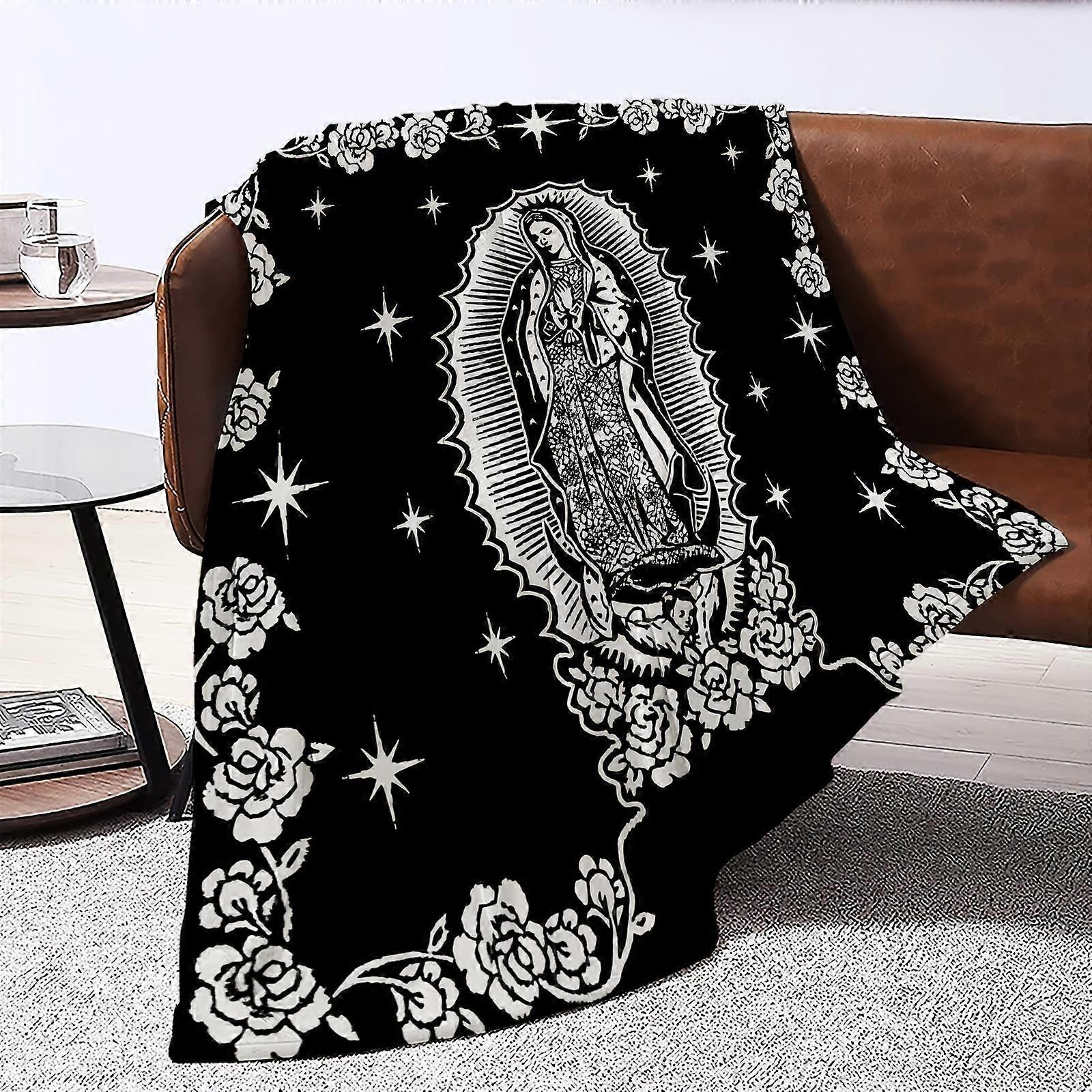 [Cozy Throw Blanket] Soft, Warm Cozy Virgin Mary Prayer Flannel Throw Blanket | Multi-Purpose Shawl with Intricate Flora-mnbvc384