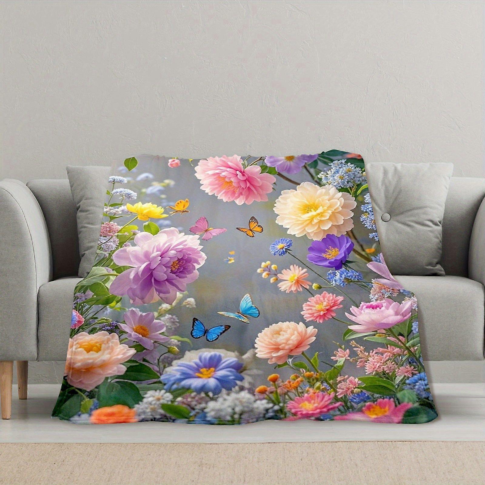 Lush Spring Garden Floral Throw Blanket - Ultra-Soft 280gsm Flannel, Vibrant Roses & Peonies Design, Anti-Pilling Machin-mnbvc400