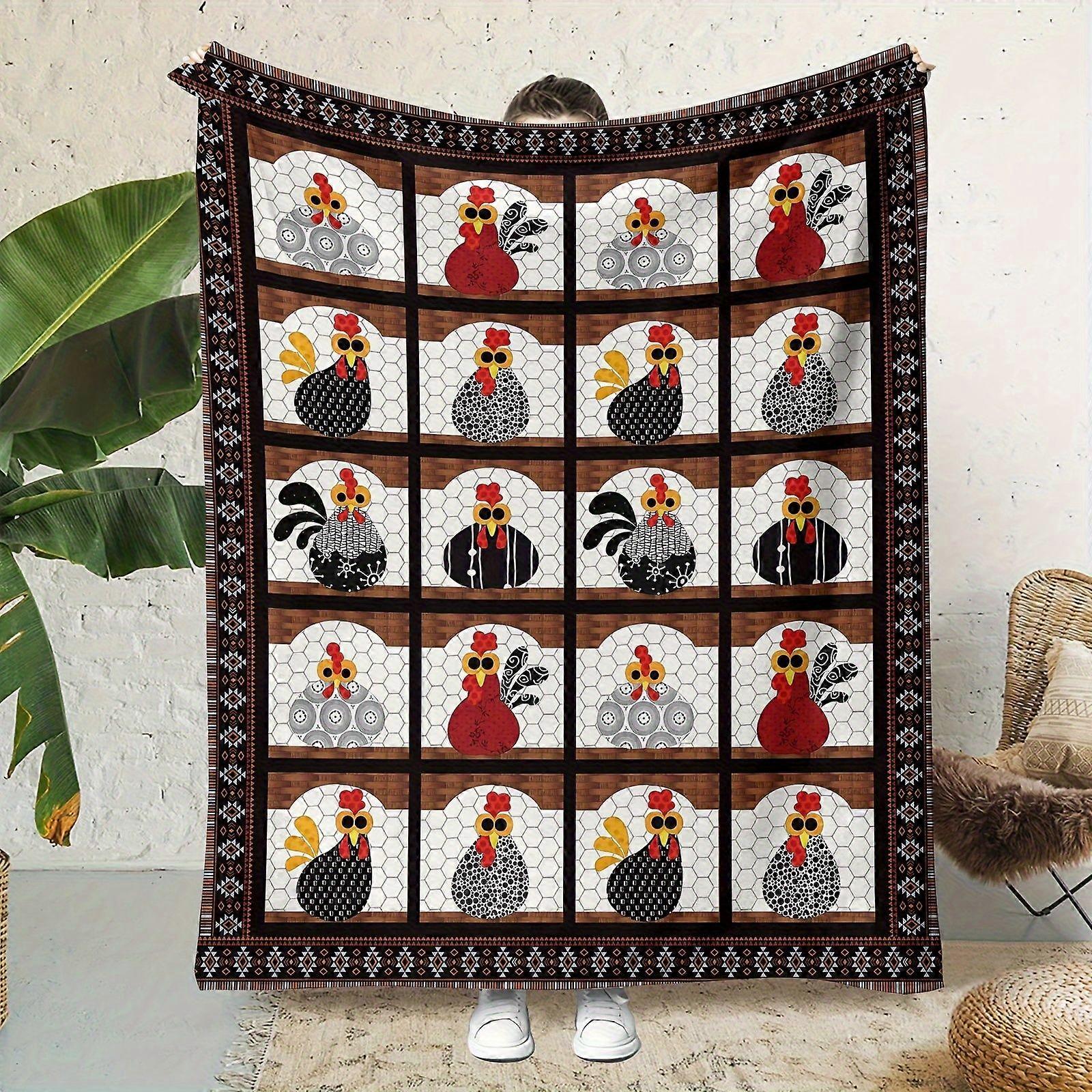 [280gsm Flannel Blanket] Soft Heavyweight 280gsm Farmhouse Rooster Pattern Flannel Blanket - All-Season Throw in Warm Re-qazxc28