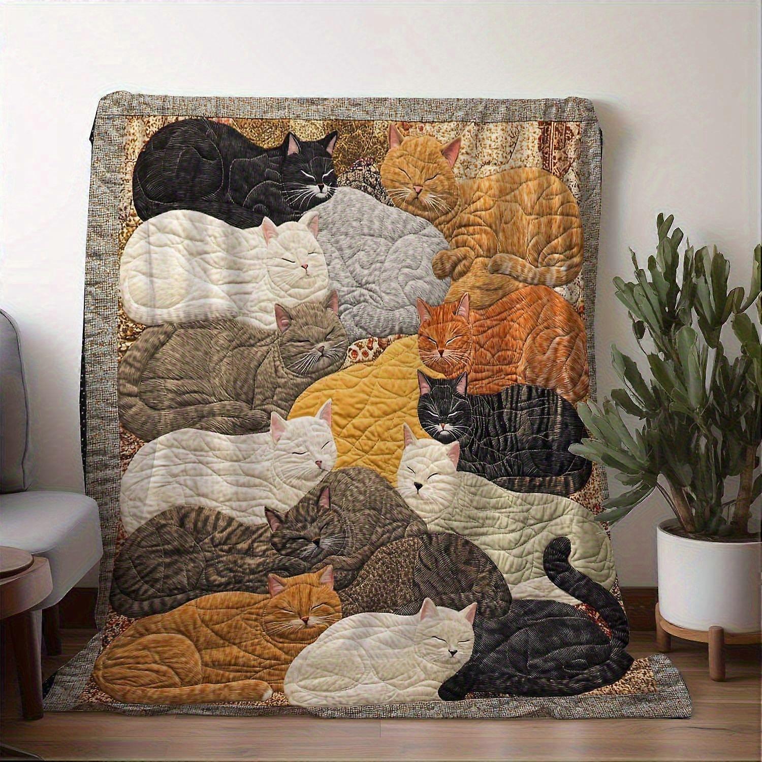 [Luxury Cat Blanket] Soft Warm Luxury Cozy Vintage Cat Print Flannel Blanket | Plush Throw with Adorable Cartoon Cat Des-qweui139
