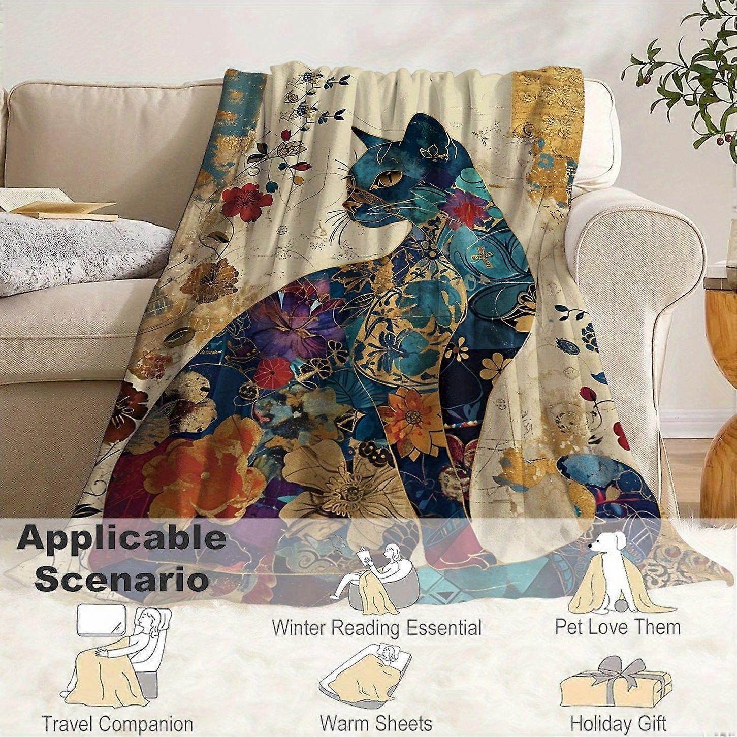 Luxury Luxury Boho Cat Floral Throw Blanket Soft Lightweight All-Season Flannel-like Polyester Blanket with Floral Patte-ojhgf7