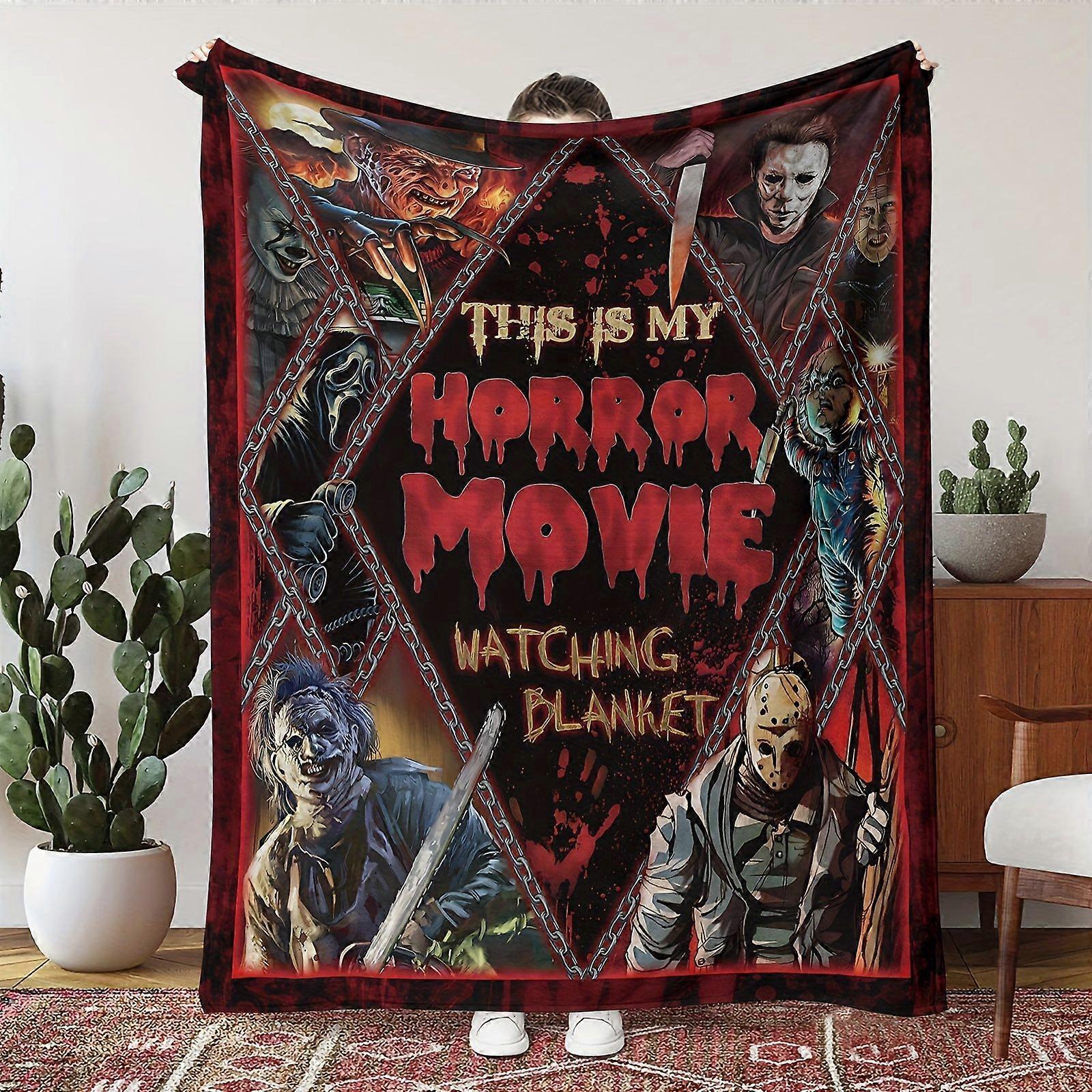 Luxury 280GSM Soft Flannel Halloween Blanket - "This Is My Horror Movie" Graphic Design, Contemporary Style, All-Season -ojhgf62