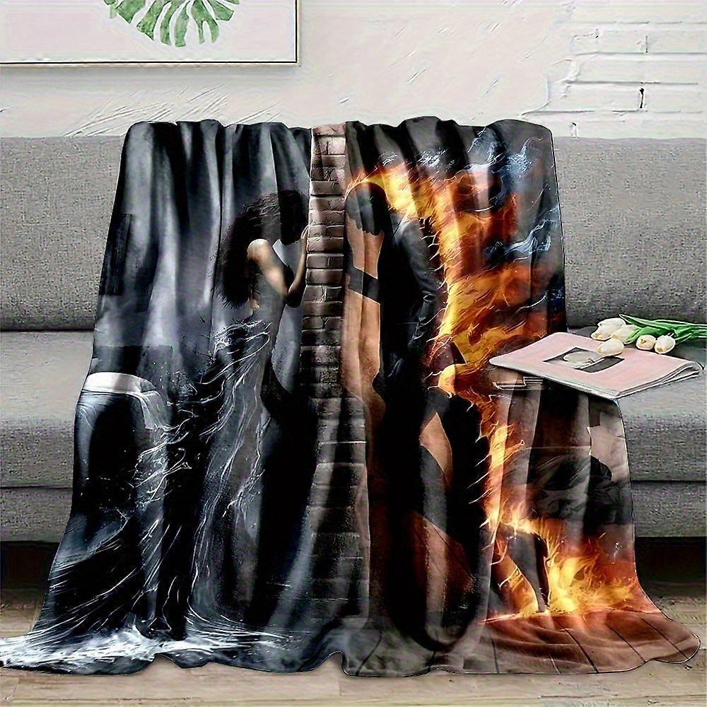 Flannel Blanket 2D Printed Cozy Couples' Ice Fire Print Flannel Throw Blanket Soft, All-Season Comfort for Bed, Sofa, Ca-ojhgf68
