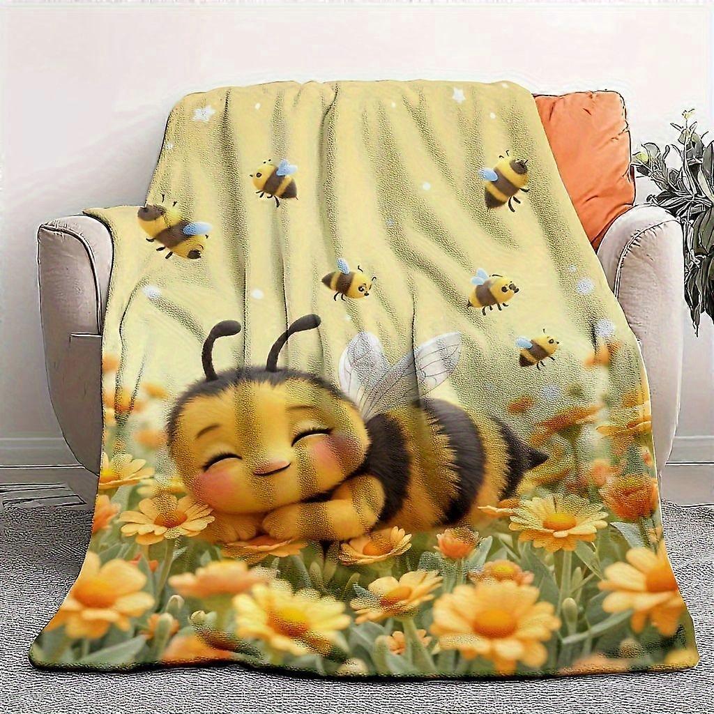 Luxury Ultra-Cozy Bee Flower Flannel Blanket Soft Warm All-Season Throw with Whimsical Cartoon Bees Yellow Flowers Desig-ojhgf103