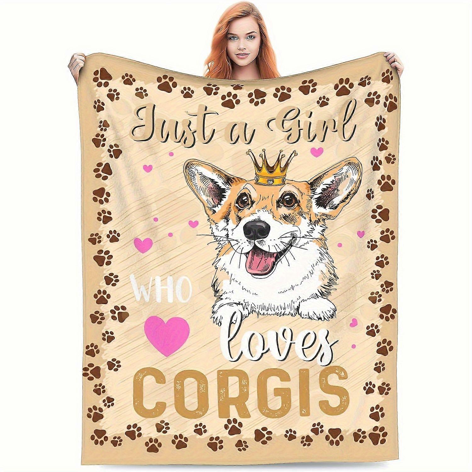 Cozy Corgi Lover Flannel Blanket \u2013 Soft Retro-Style Throw with "Just a Girl Who Loves Corgis" Design, Warm & Plush -nbvcx39