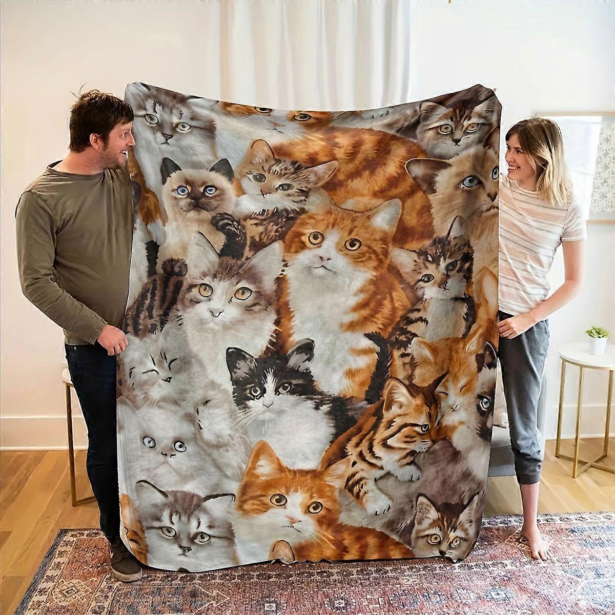 Plush Flannel Cat Blanket with Tabby & Tuxedo Cats - All-Season Soft Fleece Bedspread for Couch, Bed, Office - Cozy Gift-nbvcx381
