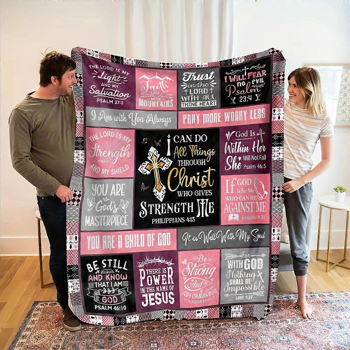 Religious Inspirational Flannel Blanket with Bible Verses & Cross Design - Soft All-Season Throw for Home, Office, or Gi-nbvcx438