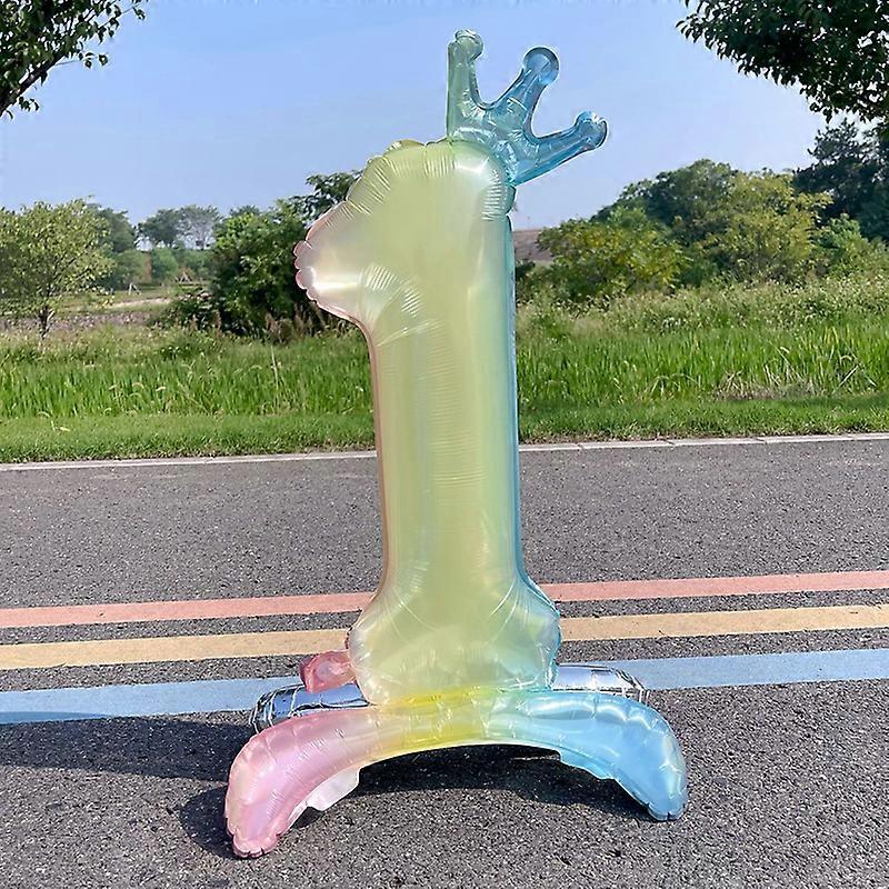 1pcs 32inch Standing Rainbow Digital Balloon Gradient Colorful Crown 0-9 Aluminum Foil Balloon Birthday Party Baby Shower Decor