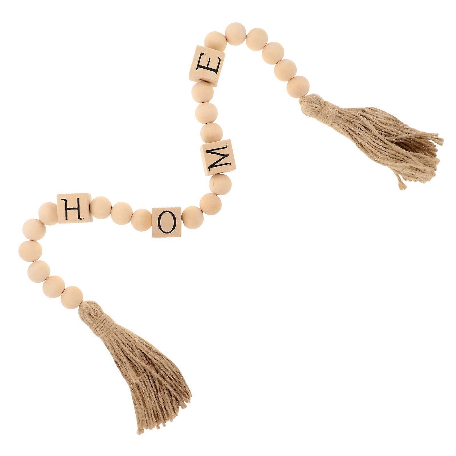 Rustic Wood Beads Tassel Hanging Garland for Decoration Beige Color
