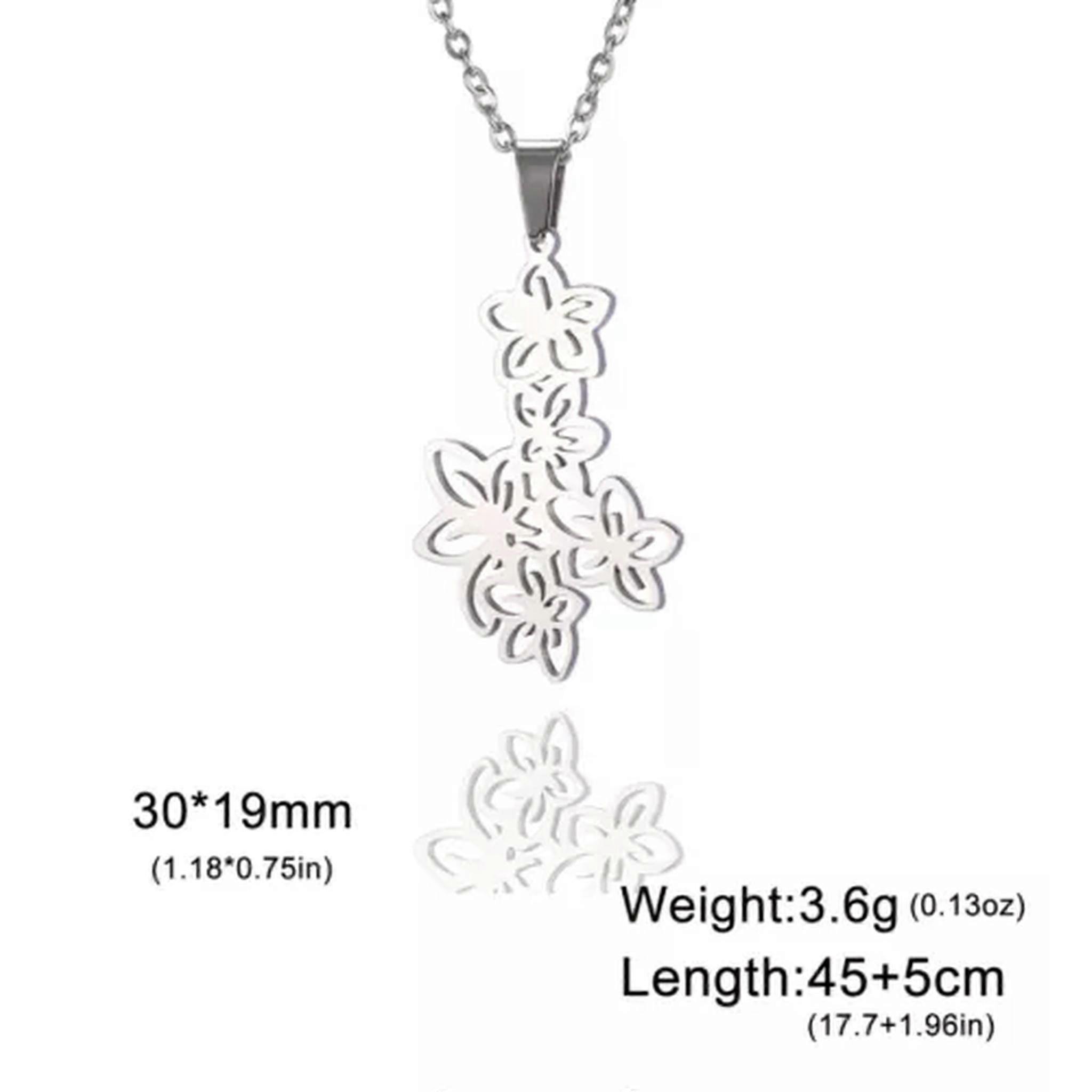 RSAMD Bohemian Flowers Pendant Necklace Stainless Steel Chain Choker Trendy Jewelry-45-50cm-Steel color