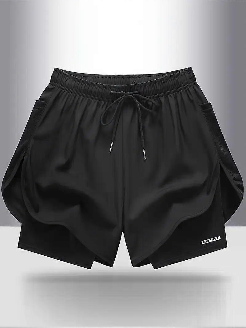 Summer Women's Shorts, Double-Layered Faux Two-Piece Knee-Length Shorts, Polyester Spandex Fabric Knit Pants, Breathable Quick-Dry Compressi
